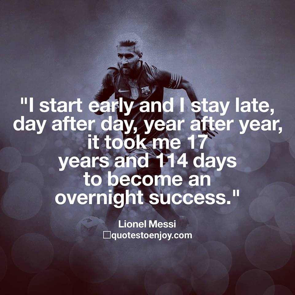 Lionel Messi Overnight Success Quote / Success Quotes Page 12 Quotes : I start early and i stay late, day after day, year after year.. Quotations by lionel messi, argentinian footballer, born june 24, 1987. Barcelona gave me everything, they took a chance on me when nobody else would. I start early and i stay late, day after day, year after year, it took me 17 years and 114 days to become an overnight success. Hear him say it … i start early and i stay late, day after day, year after people usually say that messi was an overnight success but usually don't know the hardwork he did to earn his debut. You have to fight to reach your dream.